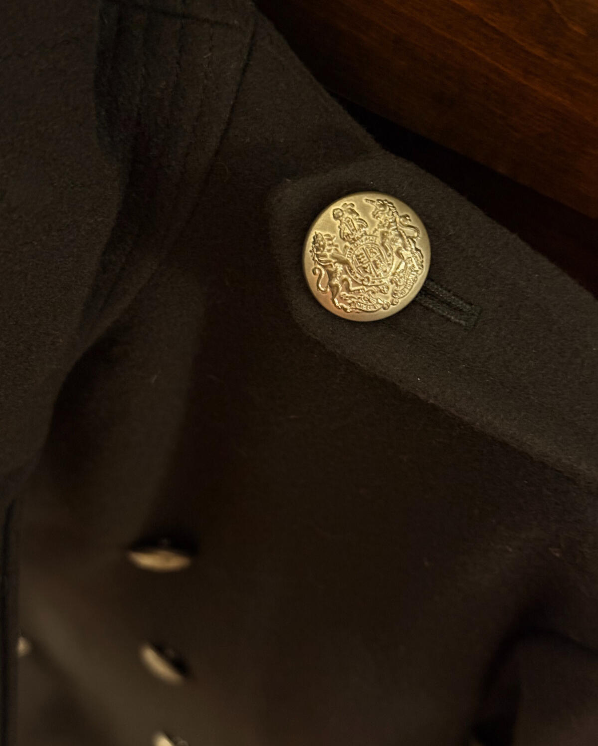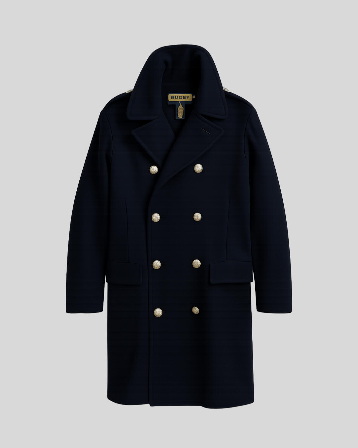 Then there’s the Ralph Lauren Rugby Trench. Navy blue with eight silver-toned buttons—structured, tailored, and just dramatic enough to turn heads. It’s the kind of coat that makes you feel composed, even if you’re only stepping out for coffee.This trench is a study in balance—military structure softened by collegiate charm. The navy wool is rich and substantial, with a drape that flatters without constraining. Eight silver-toned buttons march down the front, catching light like polished cufflinks. It’s a coat that commands attention, but never demands it. The silhouette is classic: belted in the back, epaulets, and a vented back that moves with you.It carries the elegance of tradition, with a modern ease that never feels forced. There’s a quiet drama to it, like the final scene of a fall film set in New England.