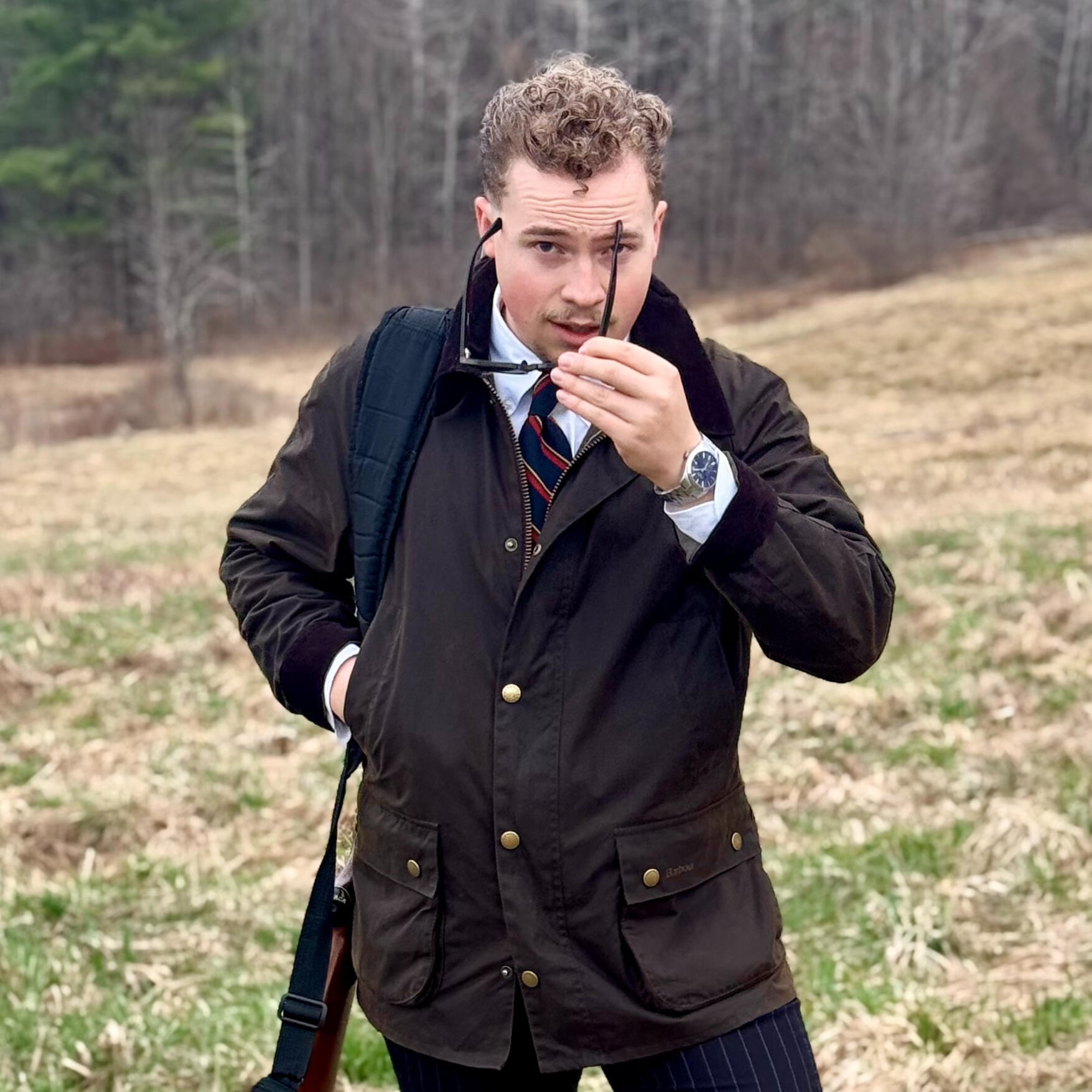 First, the Ashby Barbour. Waxed cotton, rugged charm, and a scent that recalls damp woods and distant bonfires. It’s a jacket that’s lived—creased, scuffed, and softened by time. I wear it on early walks through the trees, or when the farmer’s market calls before the sun’s fully up. The pockets are purposeful—deep enough for gloves, keys, or a folded map. And the patina? That’s earned. There’s a quiet authority to the Ashby. Waxed cotton, born of British countryside necessity, it’s a jacket that doesn’t shout, but owns the room. It’s dependable, understated, and quietly confident.